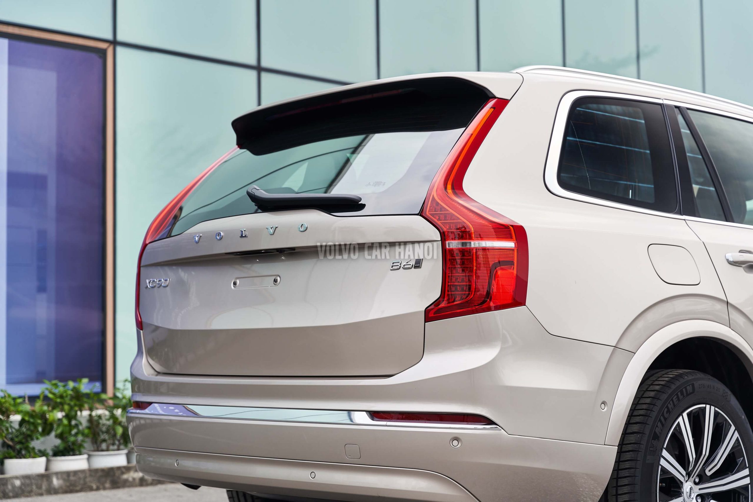 Volvo XC90 màu vàng đồng Bright Dusk nổi bật với chiều dài suýt soát 5.000mm. Không gian dành cho hành khách của xe được đánh giá là vô cùng rộng rãi và linh hoạt. Lí do là hàng ghế thứ 2 của xe có thể di chuyển lên xuống để phù hợp với chiều cao của hành khách. Vẻ bề thế của chiếc xe được tạo nên bởi bộ la zăng 20inch 10 chấu phay xước 2 màu vô cùng thể thao.